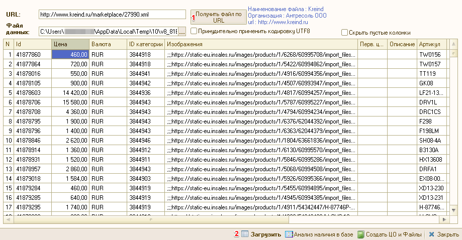 Внешняя обработка позволяет также анализировать наличие уже загруженной номенклатуры по базе 1с. Тем самым можно легко определить то, что уже загружено и то, что предстоит завести. P.S. Данная обработка больше не обновляется. Скачать внешнюю обработку |